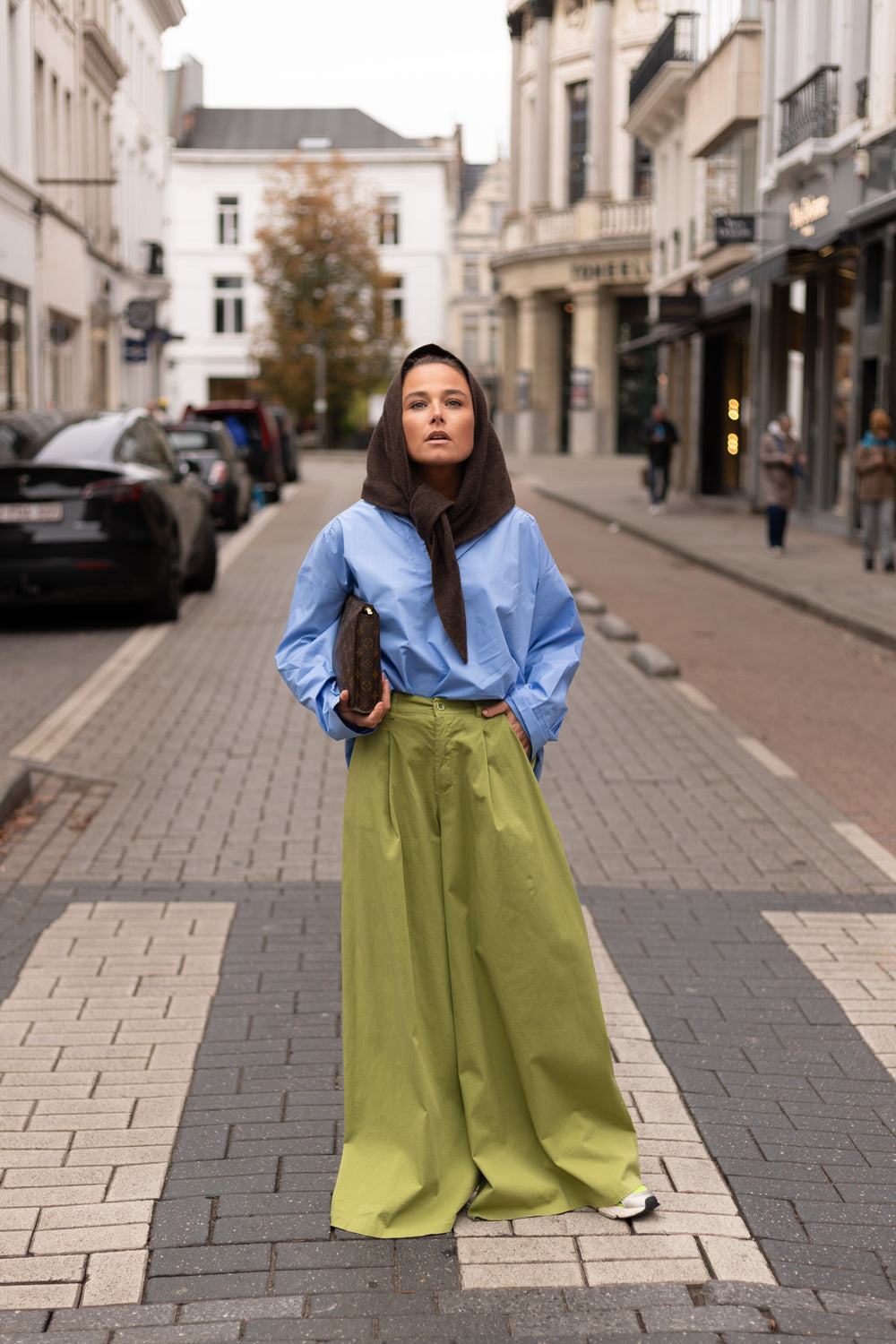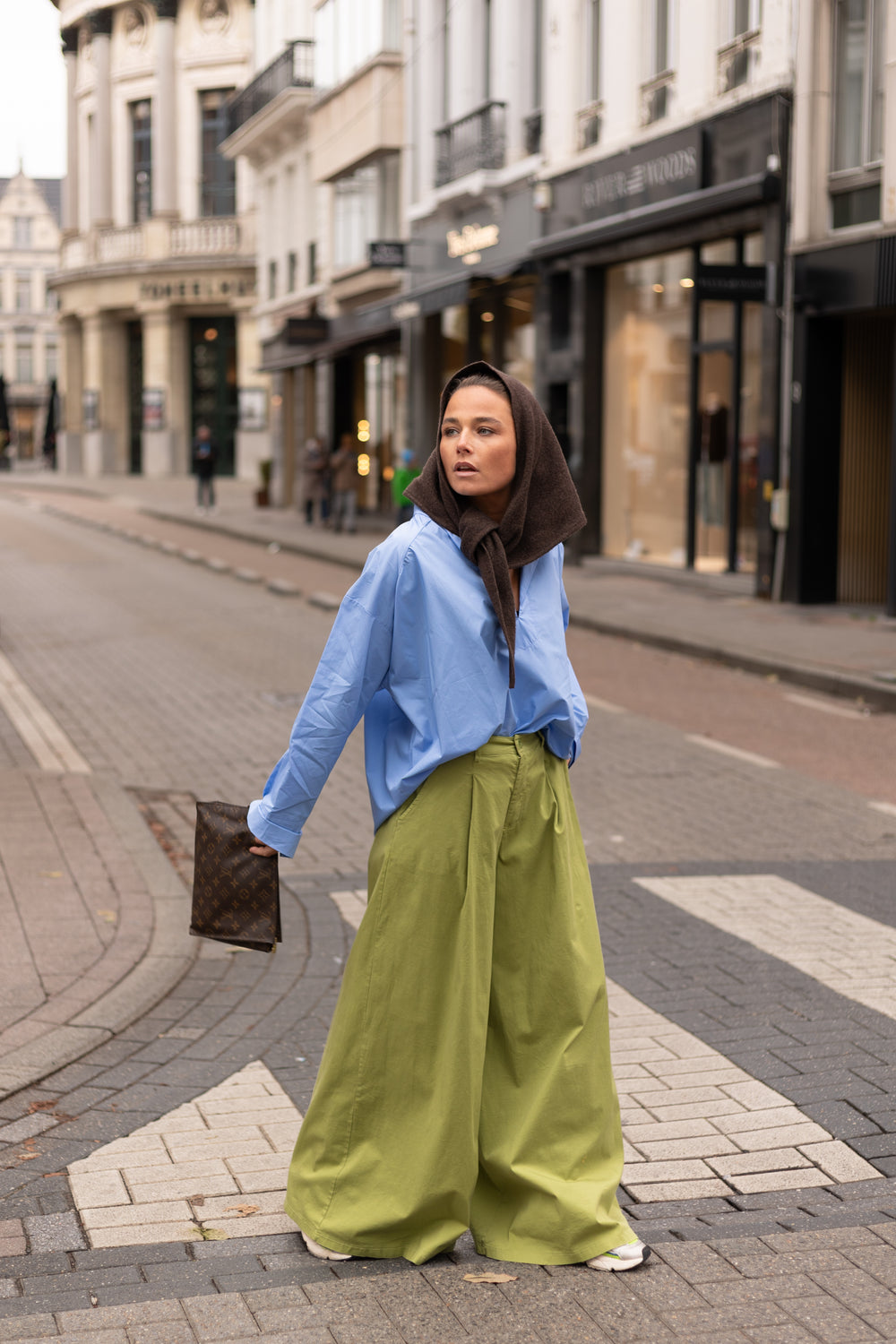 Zeer berde broek met plooien vooraan. Knoop en rits. 100% katoen